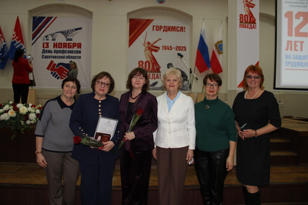 В большом зале Федерации профсоюзов собралось более 120 человек — те, кто ежедневно вносит вклад в развитие профсоюзного движения: профсоюзные активисты, представители трудовых коллективов, ветераны, а также социальные партнеры. Порядка 50 профсоюзных работников и активистов были отмечены наградами ФНПР, почетными грамотами и благодарностями различного уровня. Медали ФНПР «За верность идеалам профсоюзов» III степени была удостоена председатель Саратовской областной организации Общероссийского профсоюза работников культуры Вера Дмитриева, Почетной грамоты Федерации профсоюзных организаций области — председатель первичной профсоюзной организации Саратовского историко-патриотического комплекса «Музей боевой и трудовой славы» Ирина Потехина.