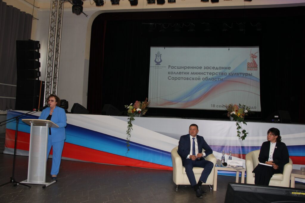 В Саратовском областном доме работников искусств состоялось расширенное заседание коллегии министерства культуры области, которое прошло под председательством заместителя председателя Правительства области Сергея Егорова. Участие в работе коллегии приняла председатель Саратовской областной организации Общероссийского профсоюза работников культуры Вера Дмитриева.